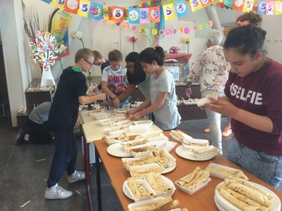 Groep 8Groep 8 heeft vandaag geholpen met het uitserveren, rollen en het beleggen van de pannenkoeken. Wat deden zij dit goed!